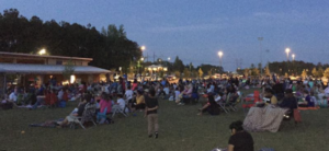 A laid-back outdoor movie night under the stars, perfect for spreading out on a blanket and enjoying a…